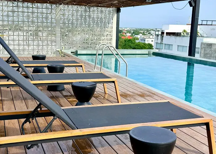 Departamento 5ta Av - Cerca de la playa con Rooftop Pool&Cancha de Padel Playa del Carmen, un apartamento de 70 m², está situado a una distancia de 400 metros del Parque Xavage by Xcaret y a 5 km del aeropuerto Nacional de Playa del Carmen. El apartamento, situado a unos cuantos pasos del club Martina Beach Club, ofrece una terraza con vistas a la ciudad.